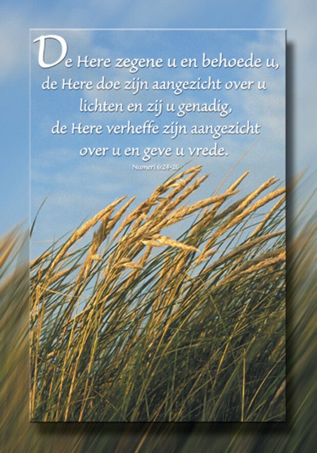 Tekst: 'De Here zegene u en behoede u, de Here doe zijn aangezicht over u lichten en zij u genadig, de Here verheffe zijn aangezicht over u en geve u vrede.' Numeri 6:24-25
